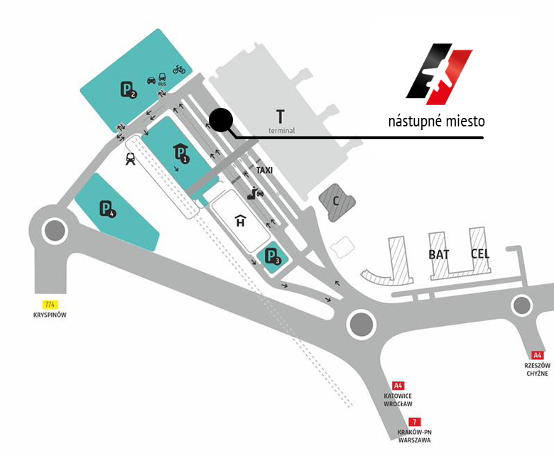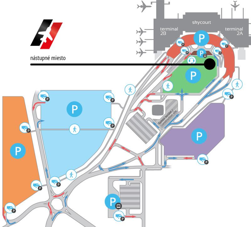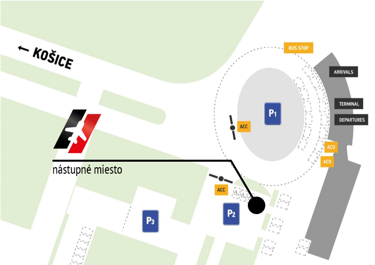 Medzinárodné letisko, parkovisko P2, pred letiskovou halou